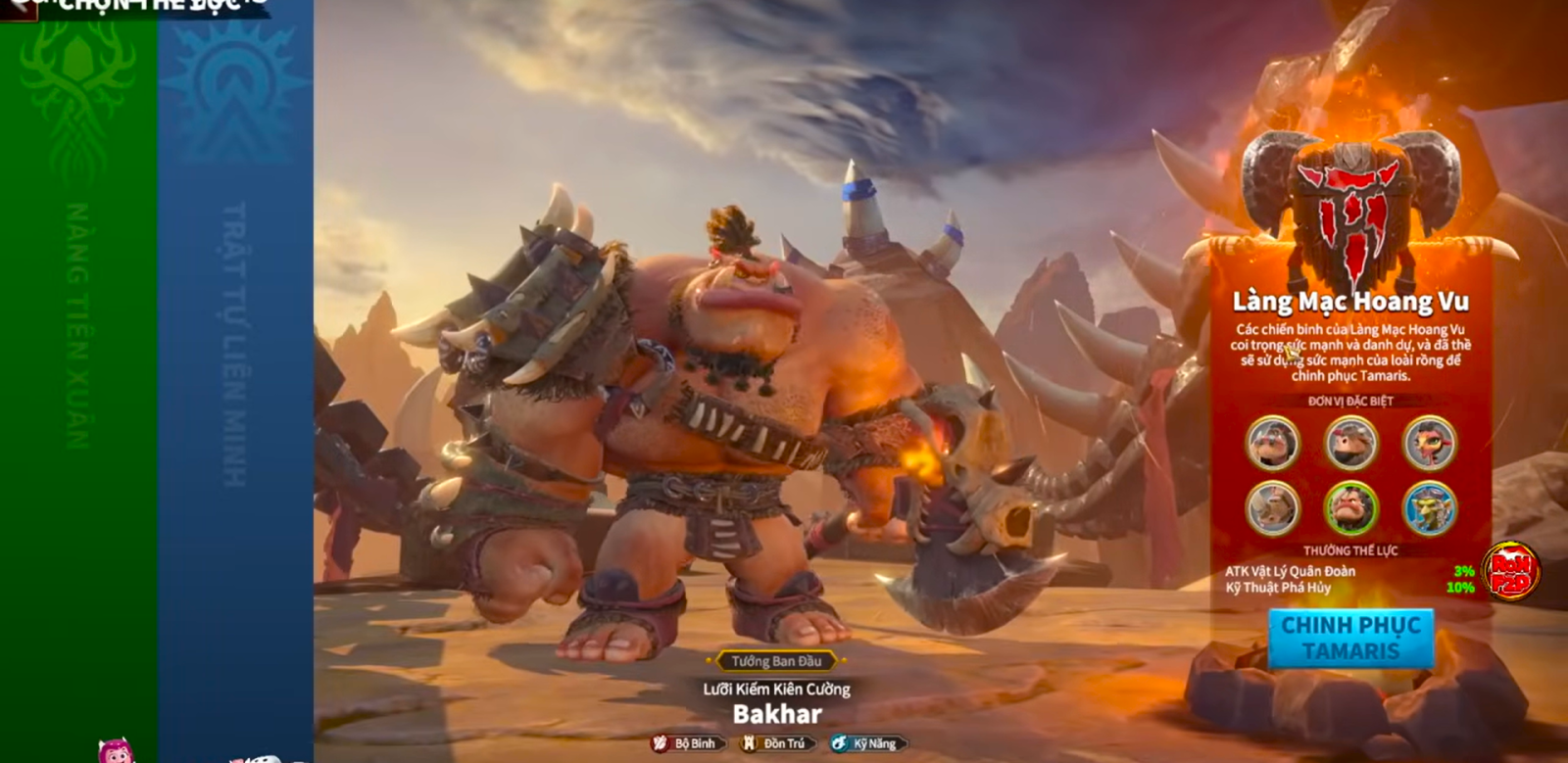Starting Hero: Bác Ha – A close-combat infantry hero with great fighting strength.