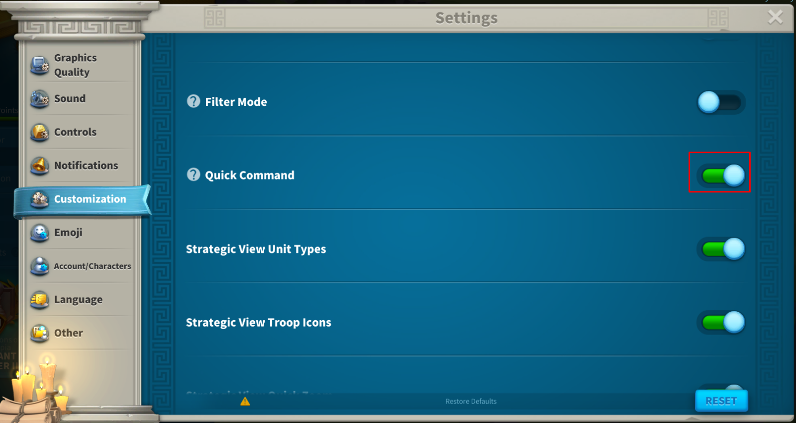 The Quick Command feature allows players to move and attack quickly without accidentally targeting unwanted objects (such as cities, ally flags, or enemy structures). Activate and customize Quick Command to accurately control your attack targets.