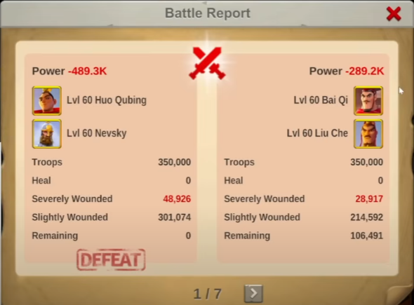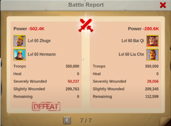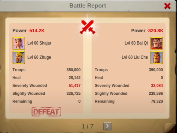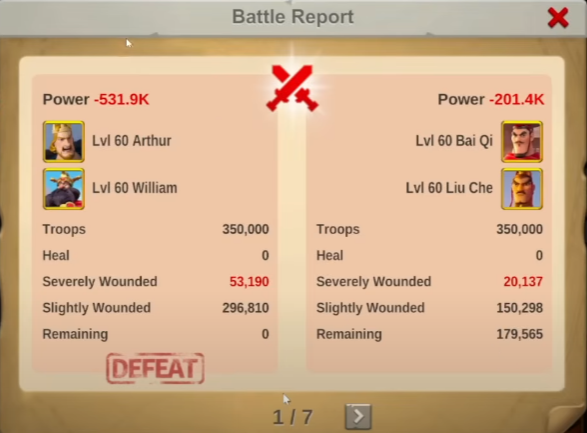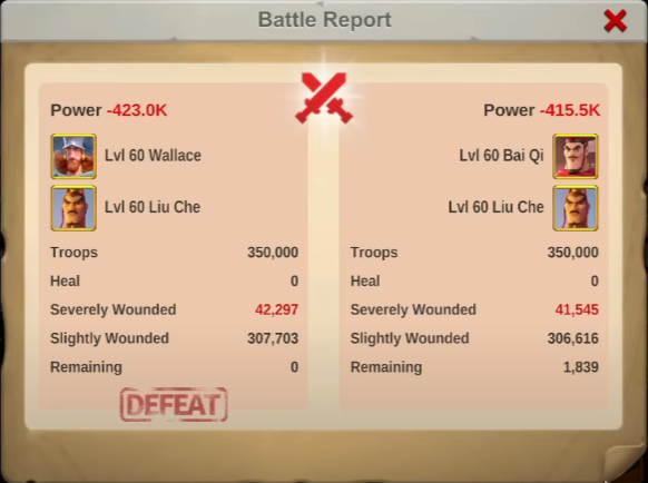 Across multiple tests against top-tier opposing commander pairs—including archers like Juilong-Herman, Shajar-Juilong, cavalry pairs like Huo-King Arthur, and other infantry combinations—the Bai-Liuch combo achieved an unprecedented 70%+ sweep rate. This means in most cases, Bai-Liuch crushed the enemy march with overwhelming force and a large number of units remaining.