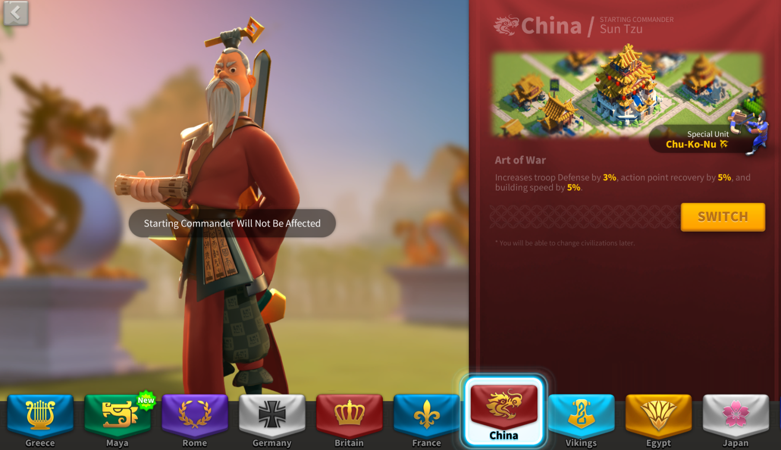 Germany → Increased troop training speed, +10% AP recovery (great for F2P).