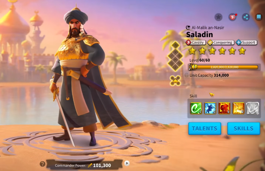 Discover if Saladin remains a worthy cavalry commander in Rise of Kingdoms 2025. Detailed breakdown of skills, talents, relics, commander pairings, pros & cons for PvP and KVK2 meta.